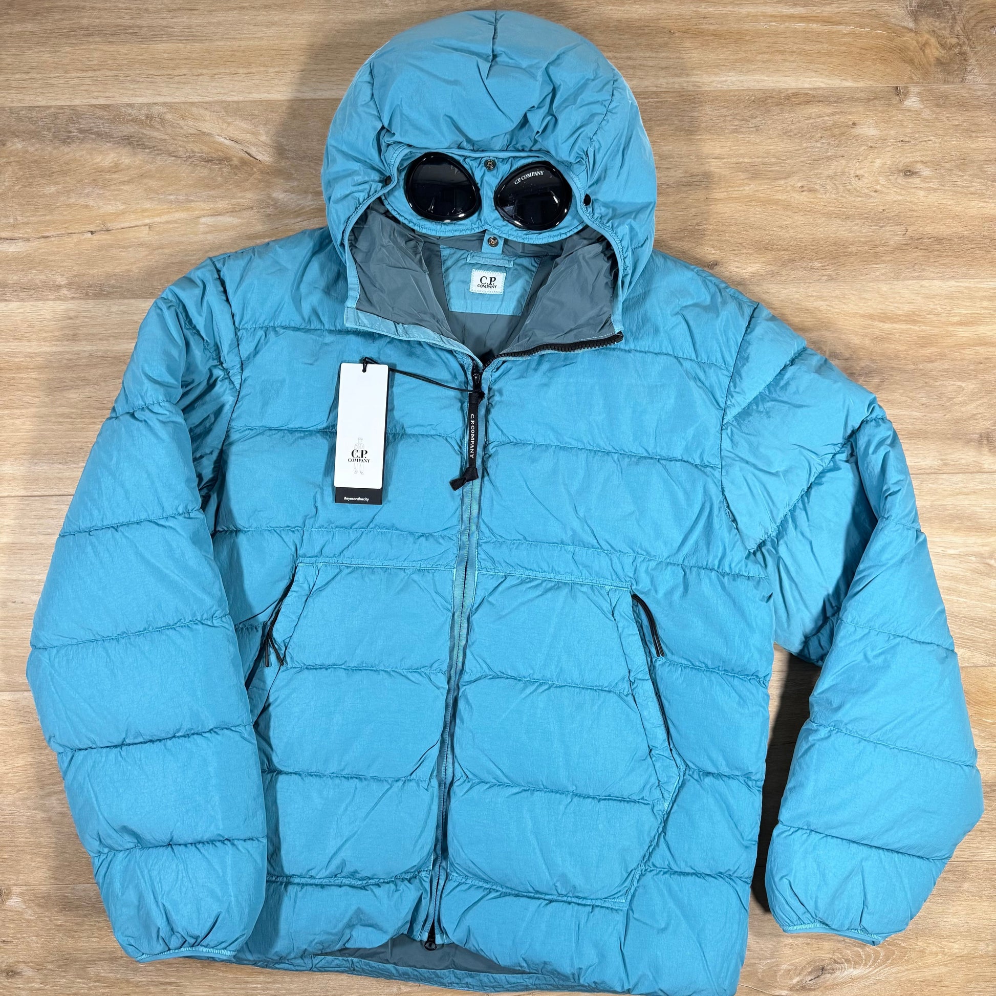 CP Company Chrome-R Goggle Down Jacket in Aegean Blue
