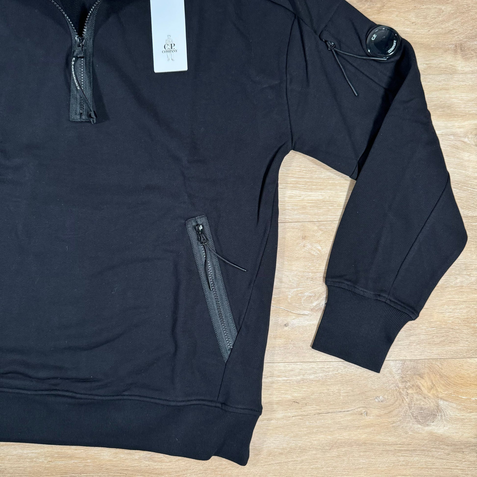 CP Company Diagonal Raised Half-Zipped Lens Sweatshirt in Black