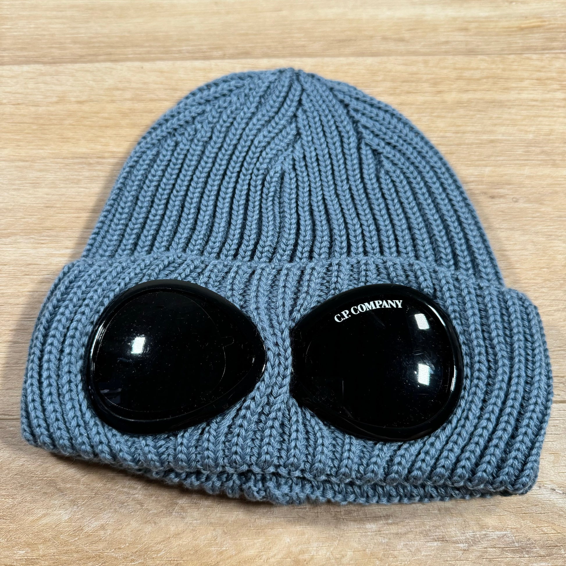 CP Company Extra Fine Merino Wool Goggle Beanie in Flint Stone