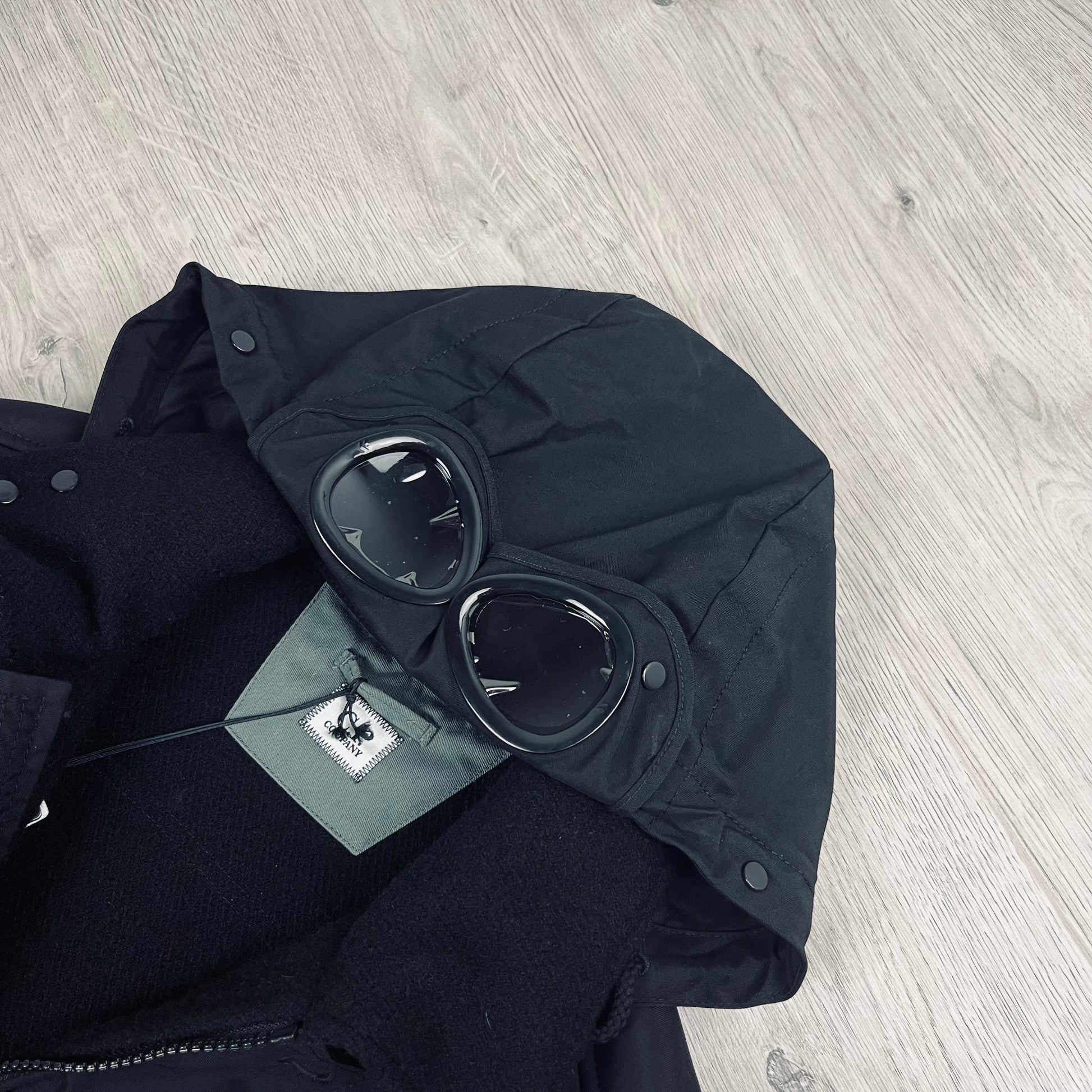 Black CP Company Duffel Goggle jacket with embroidered chest logo