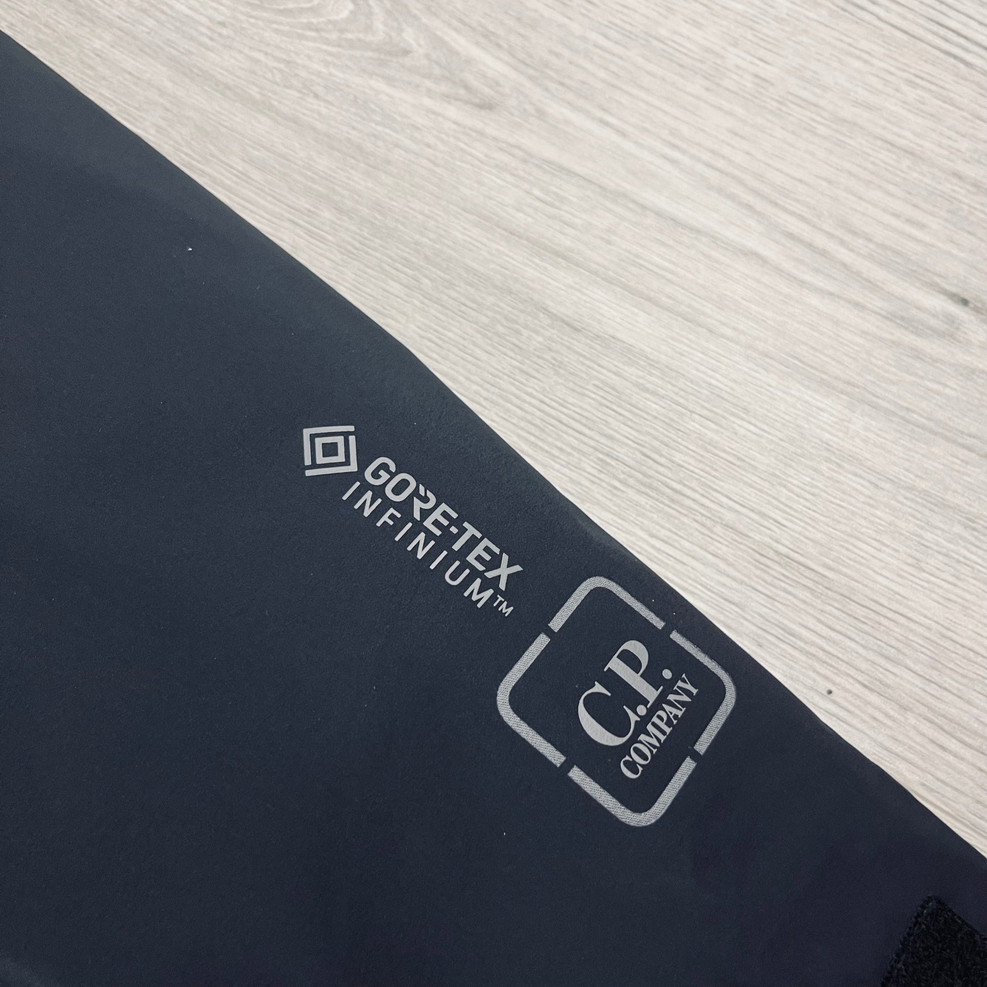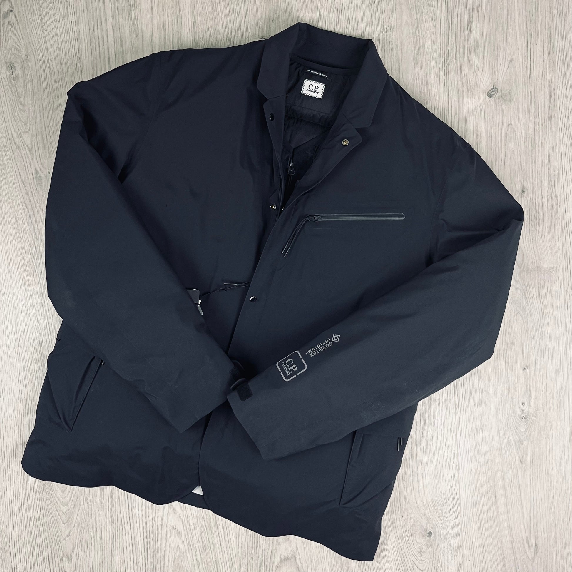 Black CP Company Metropolis Gore-Tex Infinium blazer with lasered logo badge and down padded liner