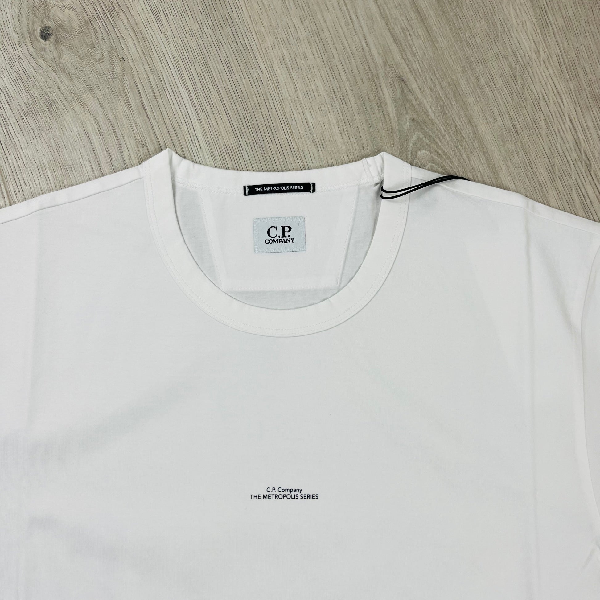 White CP Company Metropolis T-shirt with small centrally printed logo on the chest