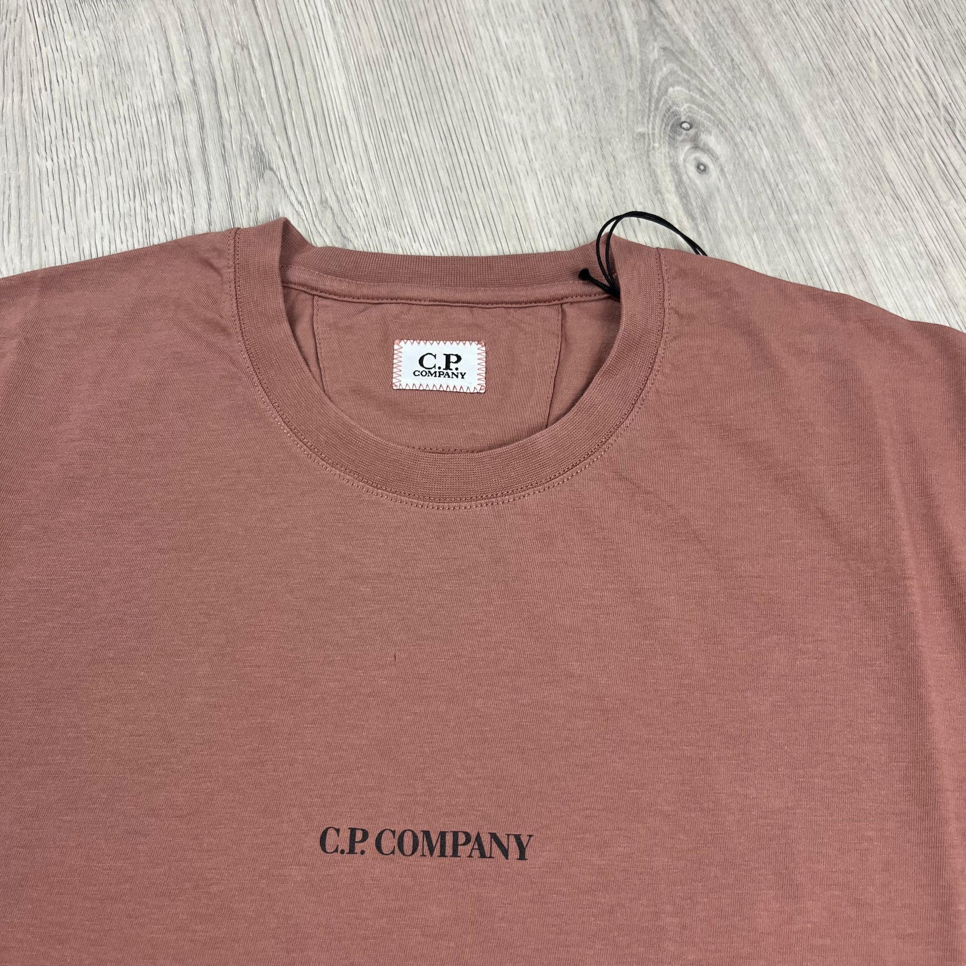 Cedar Wood pink CP Company 30/1 jersey resist dyed relaxed fit T-shirt with small black logo print on the chest. Resist dye products are coloured individually, and therefore colours aren't always uniform - this is intentional and part of the unique design. Colour irregularities are not a fault.