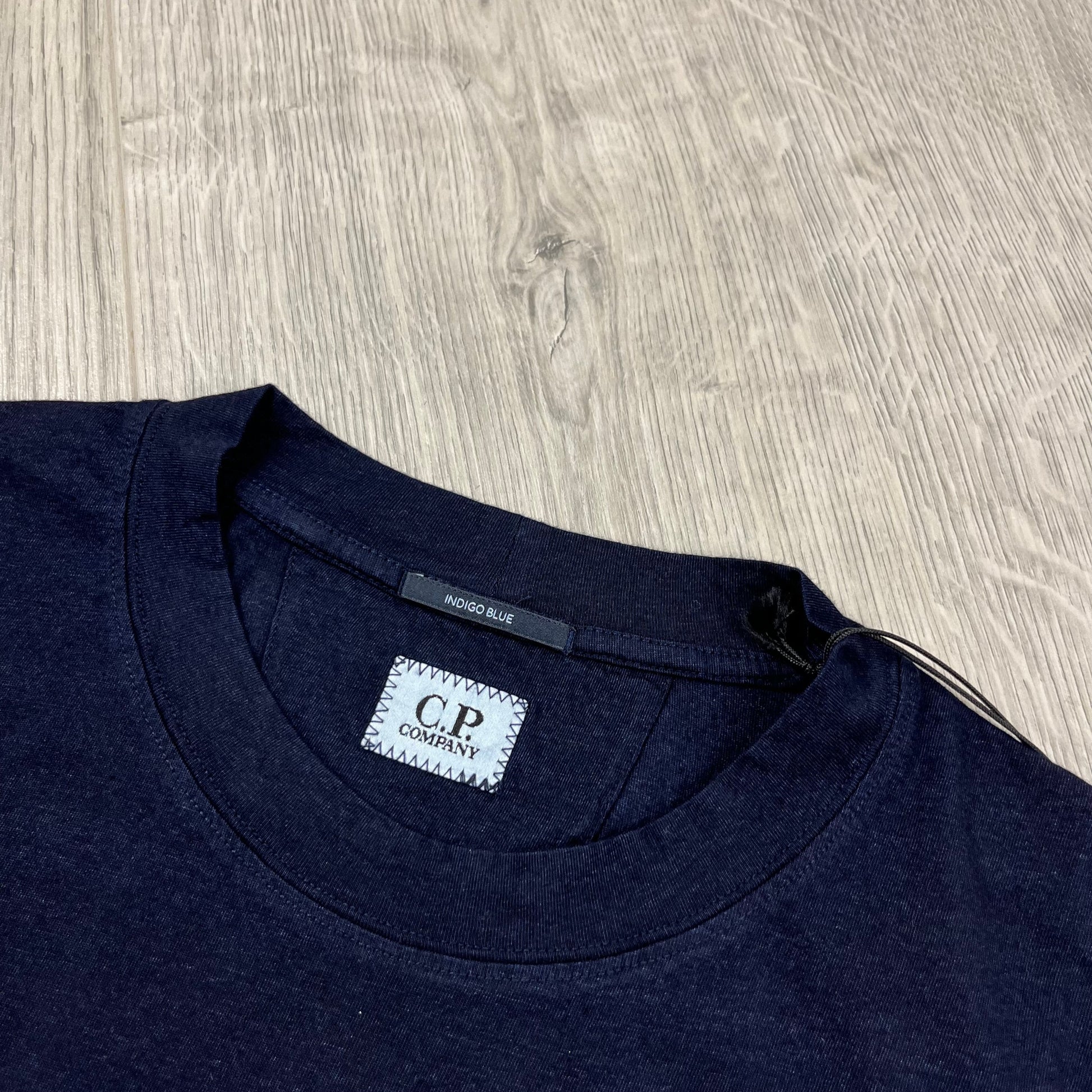 Indigo Denim CP Company T-shirt with centrally embroidered diamond logo with white with British sailor