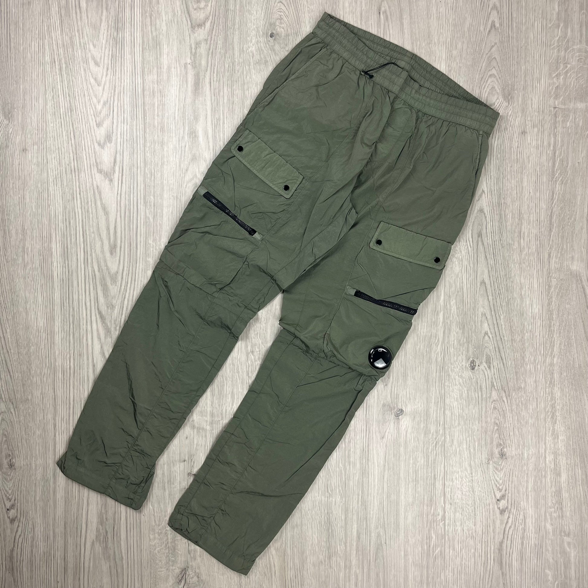 Agave Green?CP Company chrome-R track pants with lens feature.