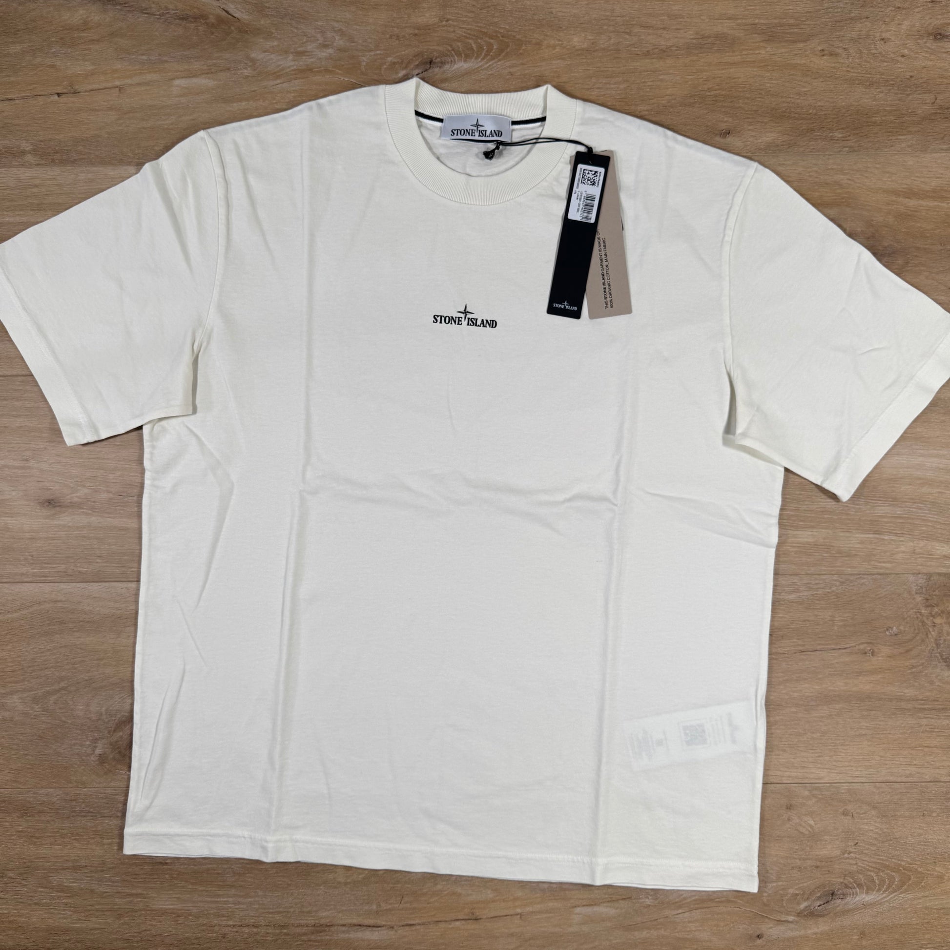 This Stone Island short-sleeve T-shirt is crafted from combed organic cotton jersey and garment dyed for a soft feel and rich colour. It features a ribbed neckline, a Stone Island logo print on the chest, and a large 'Industrial' Compass logo graphic on the back. Designed in a regular fit, it blends bold branding with everyday comfort.