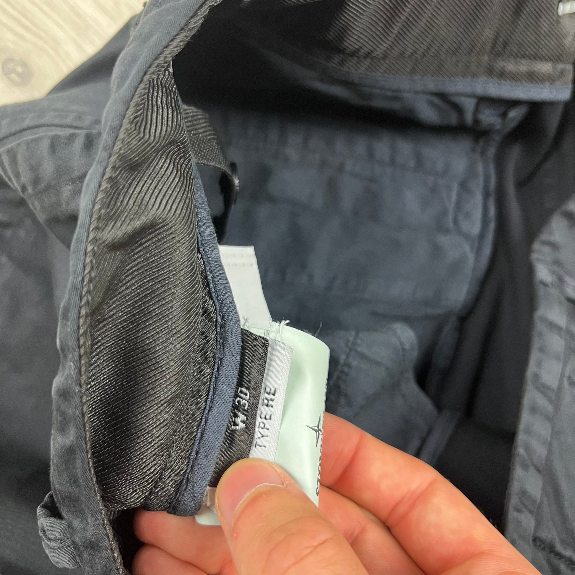 Navy Blue Stone Island garment dyed cargo trousers with badge on the pocket flap