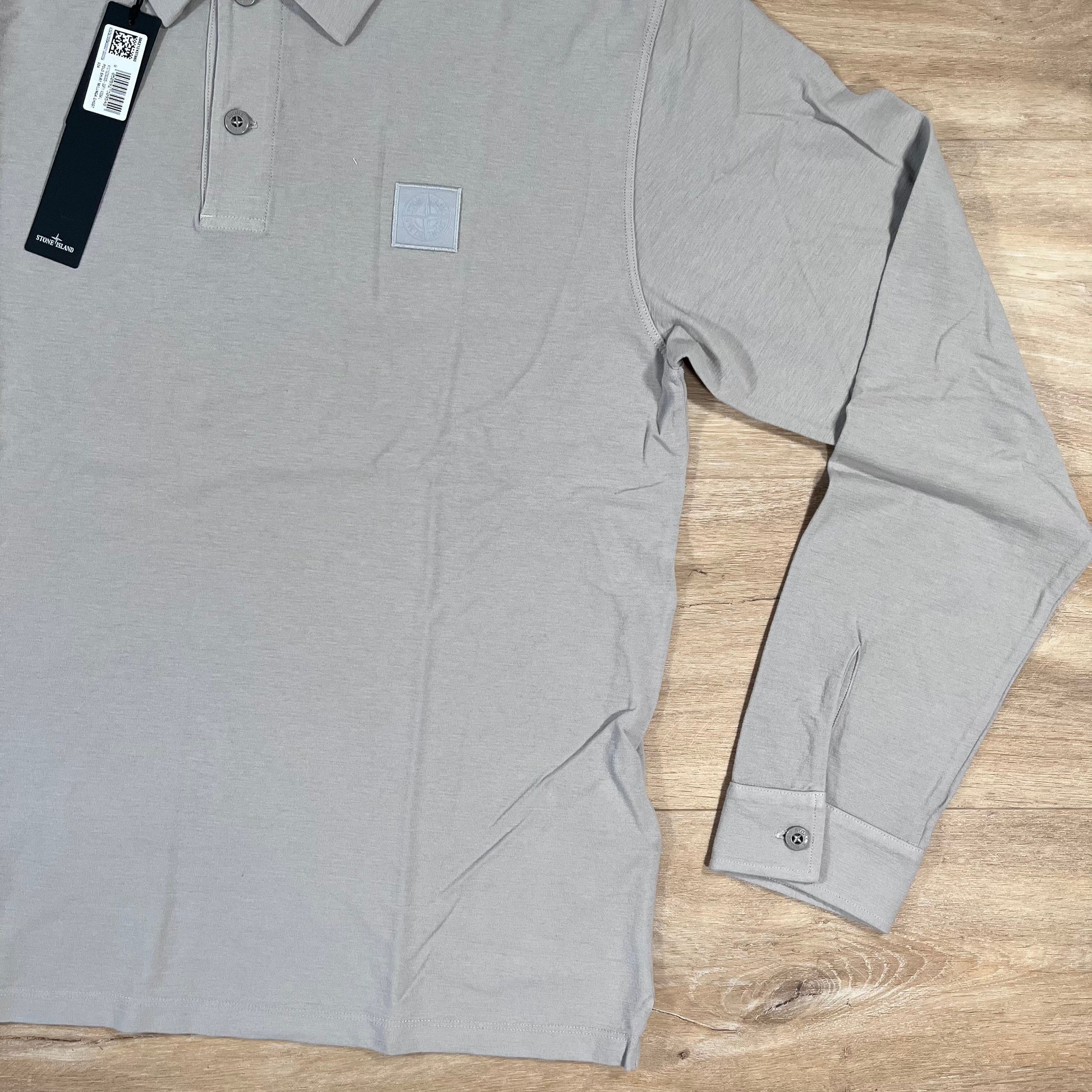 Stone Island Crepe Cotton Long-Sleeved Ghost Polo Shirt in Dust Grey