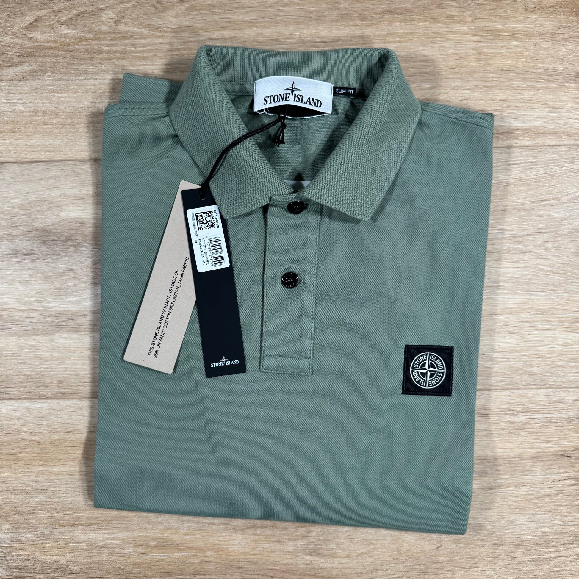 Stone Island Organic Cotton Pique Polo Shirt in Sage Green