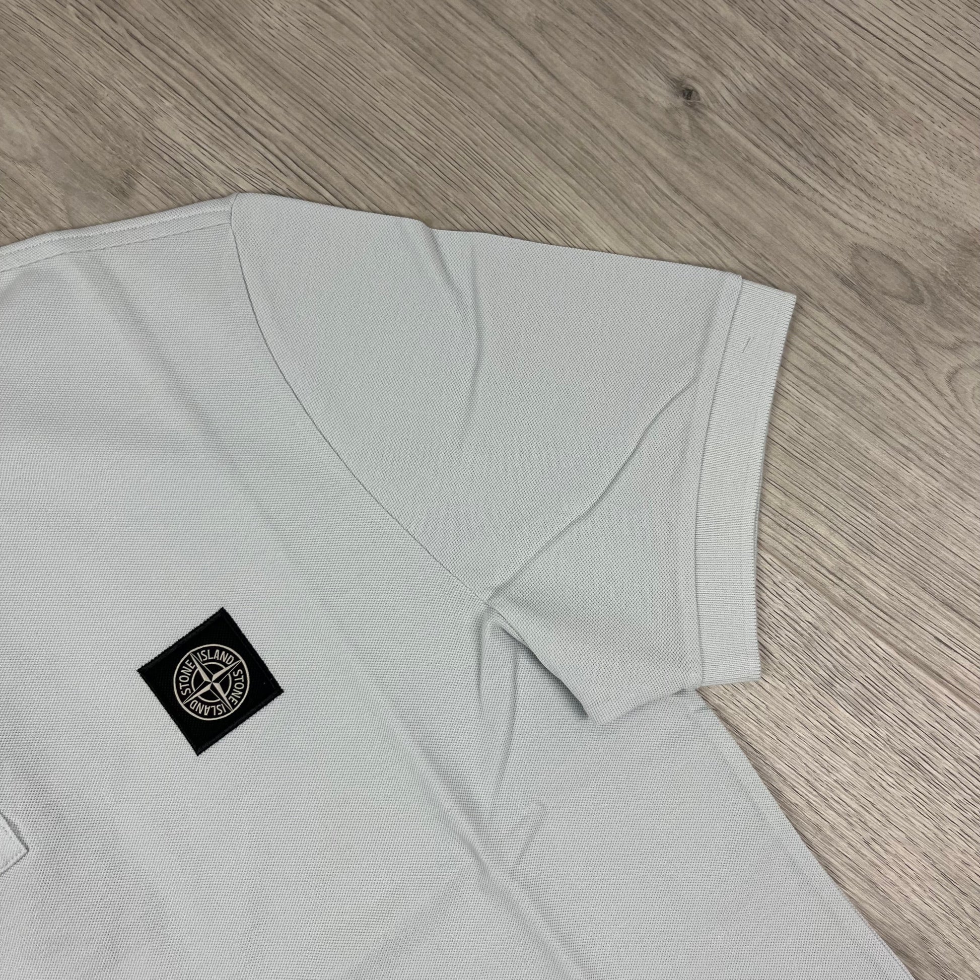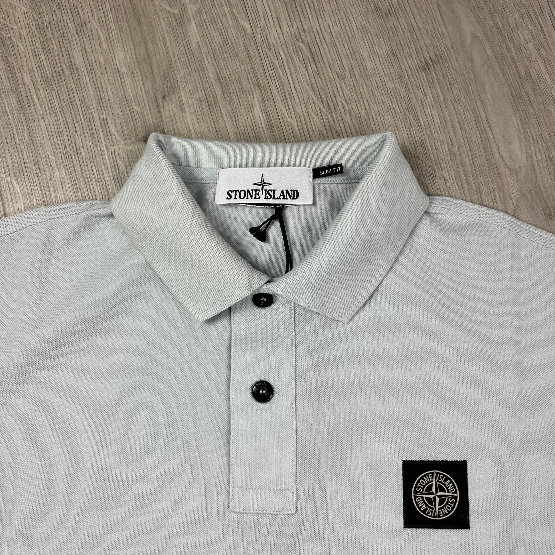 Sky Blue Stone Island piquet polo shirt with patch logo detail