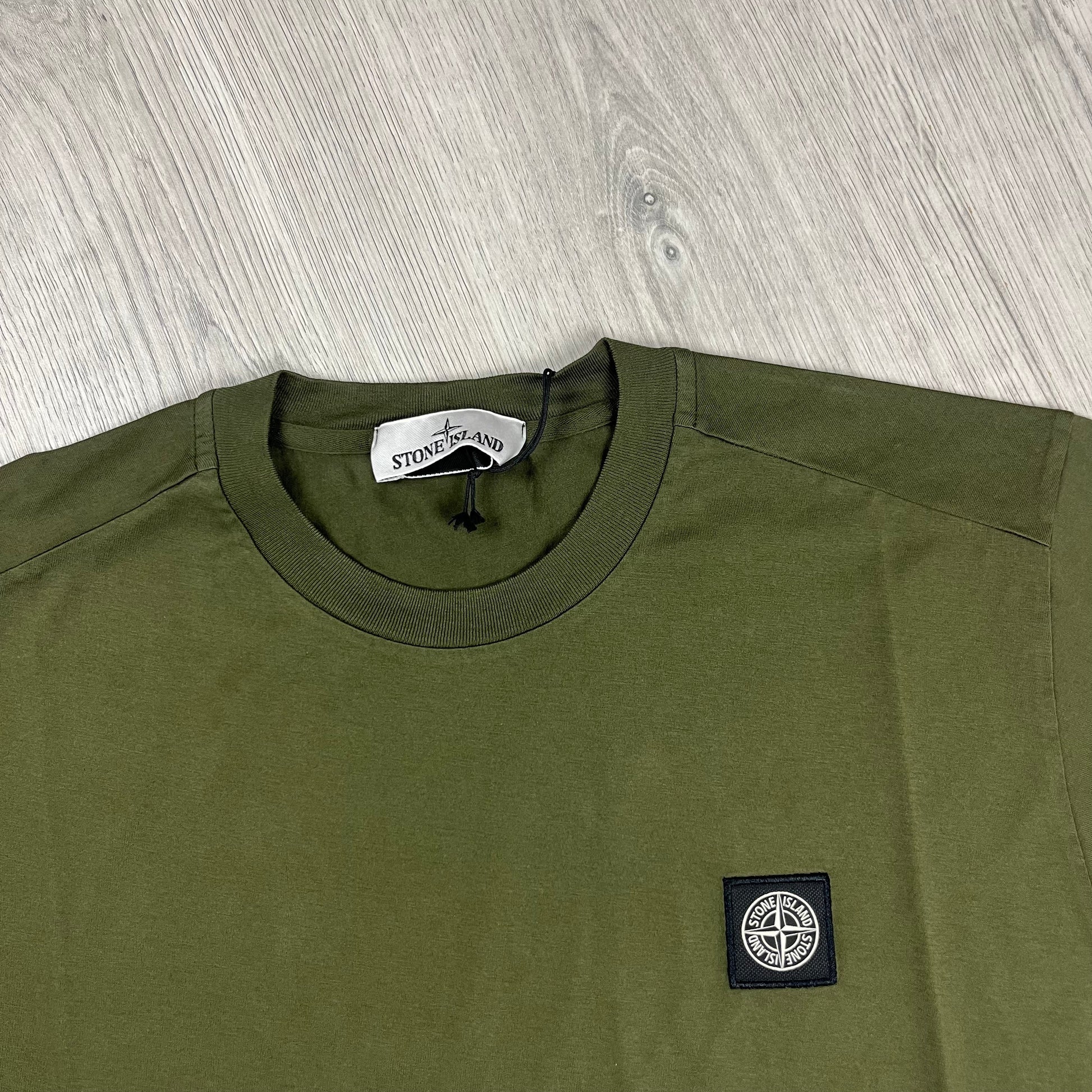 Men¡¯s Stone Island T-shirt in Olive Green?with patch logo on the chest