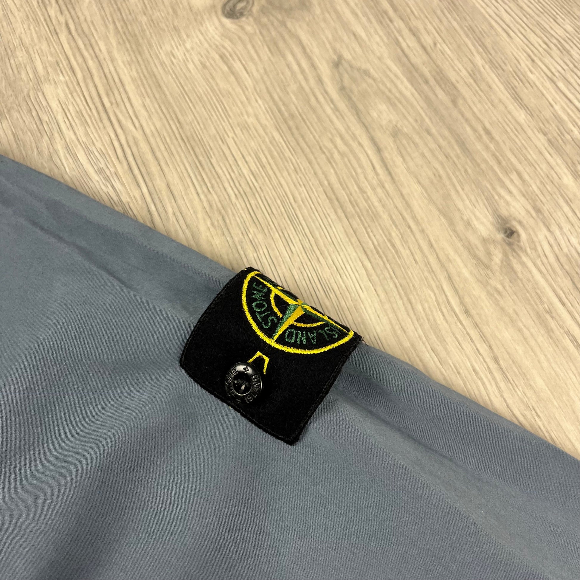 Men’s Stone Island cotton overshirt in Avio Blue with sleeve badge and zip pockets